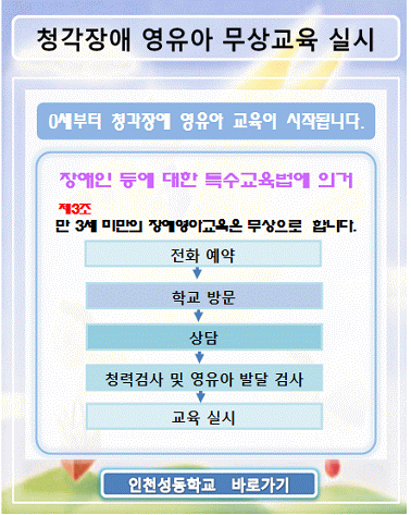 0세 ~ 만3세 미만의 청각장애 영아에게 무상교육을 실시합니다.