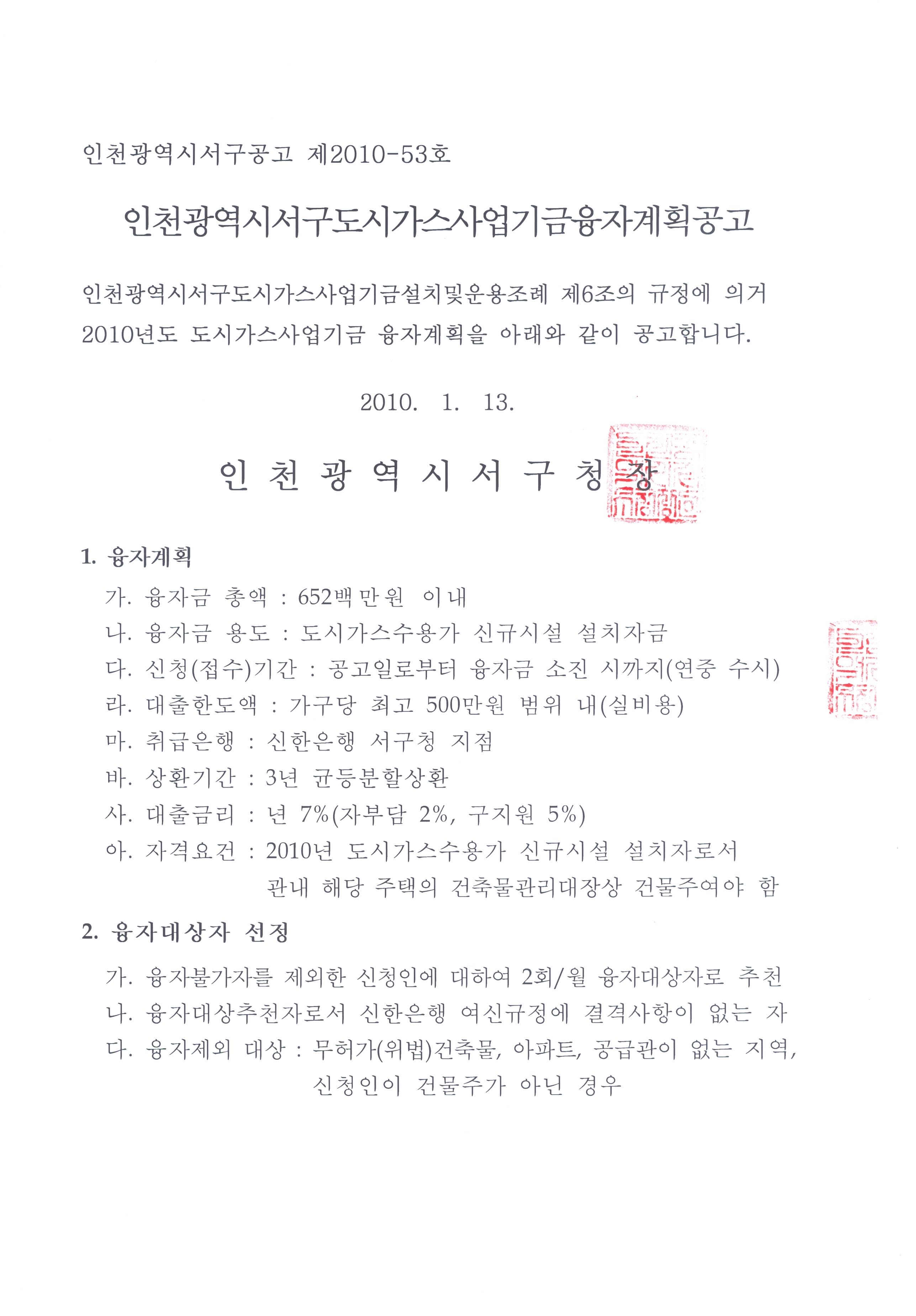 인천광역시서구도시가스사업기금융자계획공고(2010년도).hwp (20KByte)