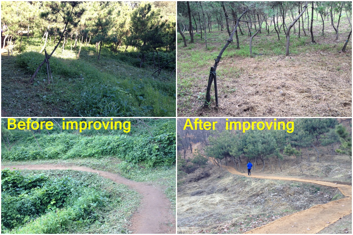 더 보태서 방제 작업까지 하여 주신 것은 물론 시민들이 둘레길의 질퍽한 길을 편안하고 안전하게 다니라고 멍석까지 깔아 주셨답니다.