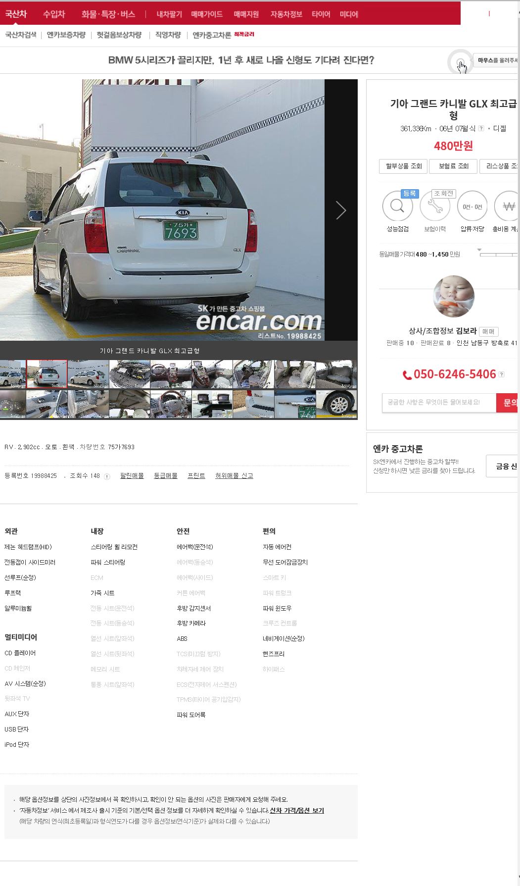 집에 있던 2년된 새차를 사정상 팔고 출퇴근 등으로 차가 필요해 엔카를 통해 차량을 검색 하던중 위 사진의 그랜드 카니발을 보고 간석 중고자동차 매매단지를 가게 되었습니다