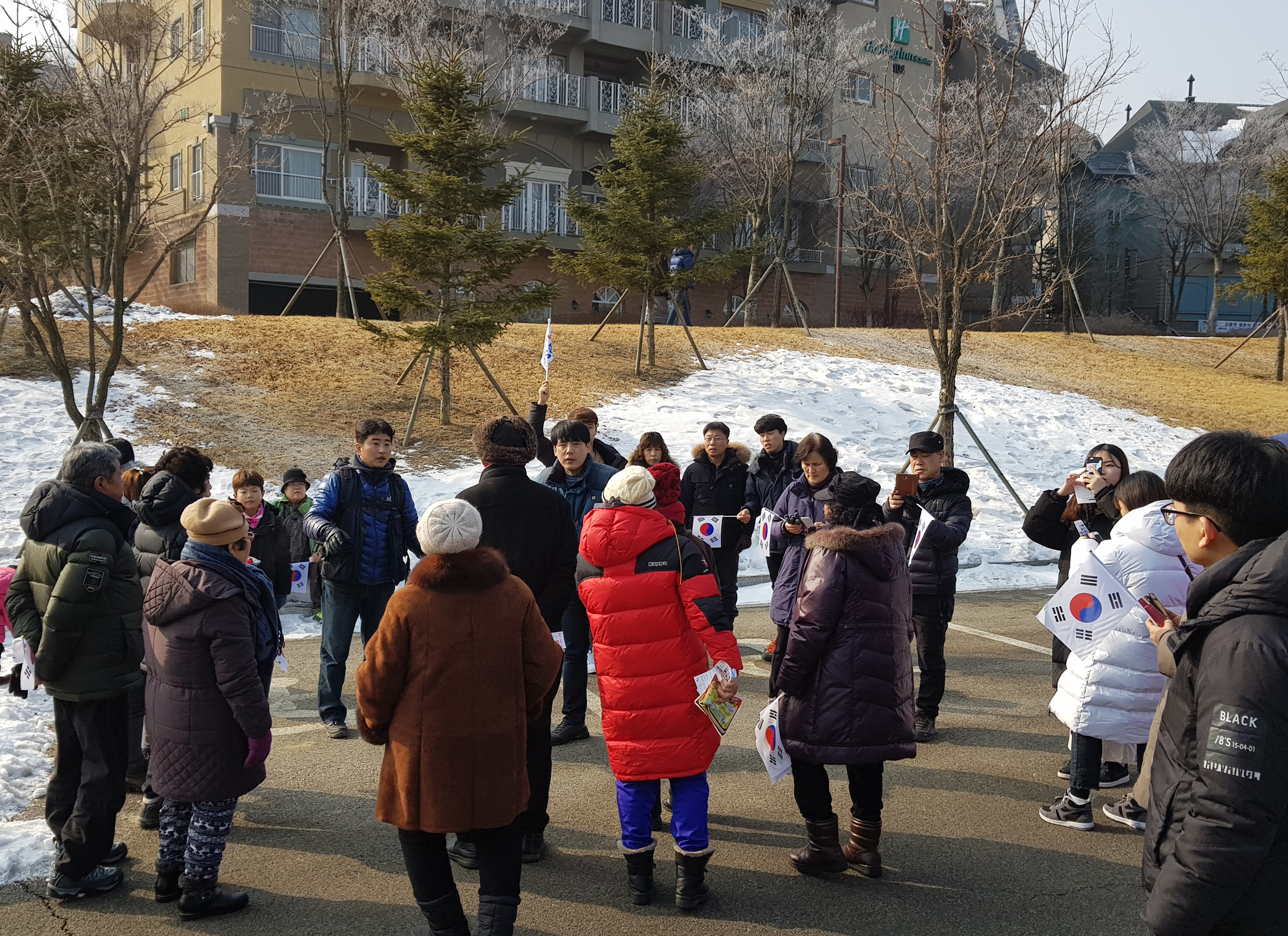 경기장으로 들어서기 전에 인원체크를 하시는 동,주사님과 주민들