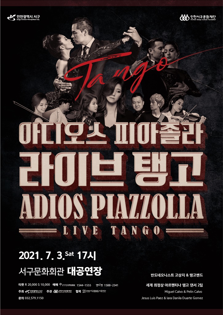 서구문화재단(이사장 이재현)은 아르헨티나 탱고 음악의 거장 아스토르 피아졸라(Astor Piazzolla) 탄생 100주년을 기념해 2021년 몸짓 시리즈 Vol.2「아디오스 피아졸라 라이브 탱고」를 오는 3일 17시 서구문화회관 대공연장에 올린다.