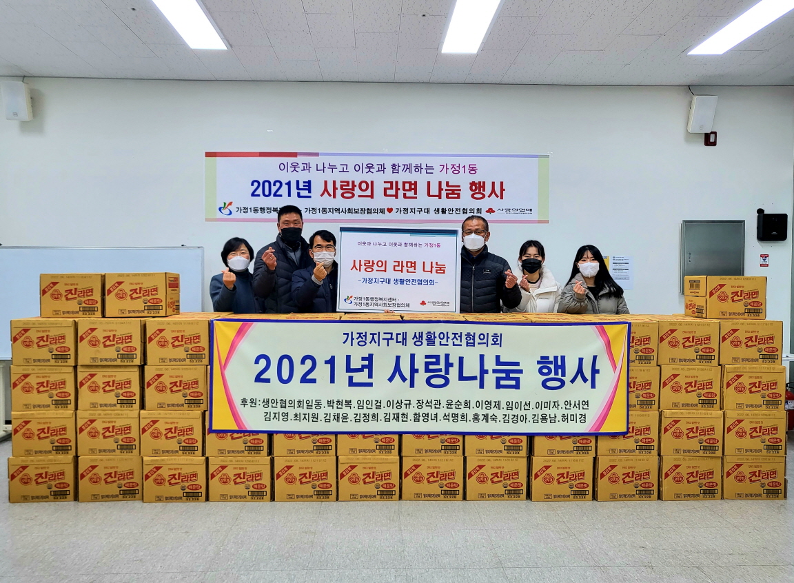 가정지구대 생활안전협의회는 매년 정기적인 물품 후원으로 관내 어려운 이웃에게 꾸준히 지원해왔다. 올해에는 라면 100상자를 기부해 지역 내 독거노인, 한부모가정 등 생활에 어려움이 있는 지역 주민에게 골고루 전달될 예정이다.