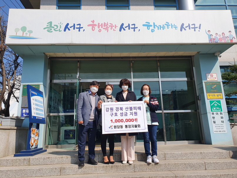 인천 서구 원당동 통장자율회(회장 최명숙)는 지난 4일 강원·경북 지역 산불피해 주민을 위한 구호 성금 100만 원을 전달했다고 밝혔다.