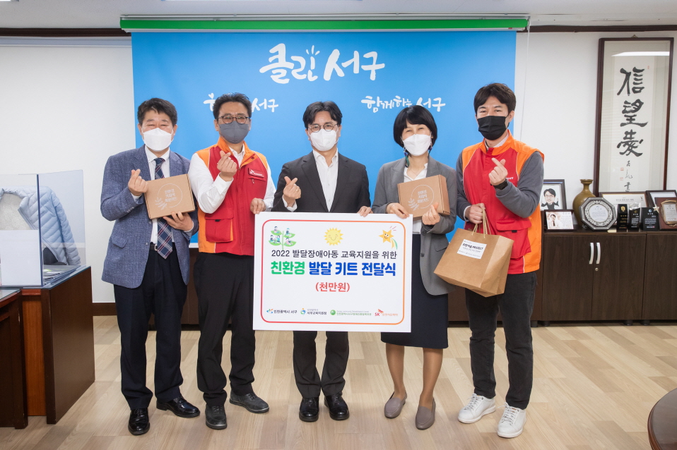 서구는 13일 ‘친환경발달키트 지원사업’을 위한 SK인천석유화학 후원금 전달식을 개최했다고 밝혔다. 이에 따라 SK는 1,000만 원 상당의 후원금을 사회복지공동모금회를 통해 기부한다.