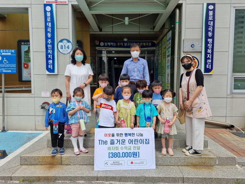 인천 서구 불로대곡동 행정복지센터(동장 이세한)25일 불로대곡동 더즐거운어린이집’(원장 이승현)으로부터 원생과 학부모가 마련한 바자회 수익금 38만 원을 전달받았다고 밝혔다.