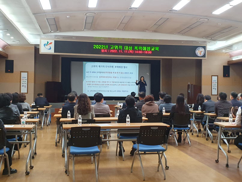 이날 강사로 나선 한국양성평등교육진흥원 고남숙 강사는 직장 내 성희롱과 성차별적 문화의 관계, 성인지 감수성에 대한 이해, 조직 내 고위직 역할의 중요성을 강조했다.