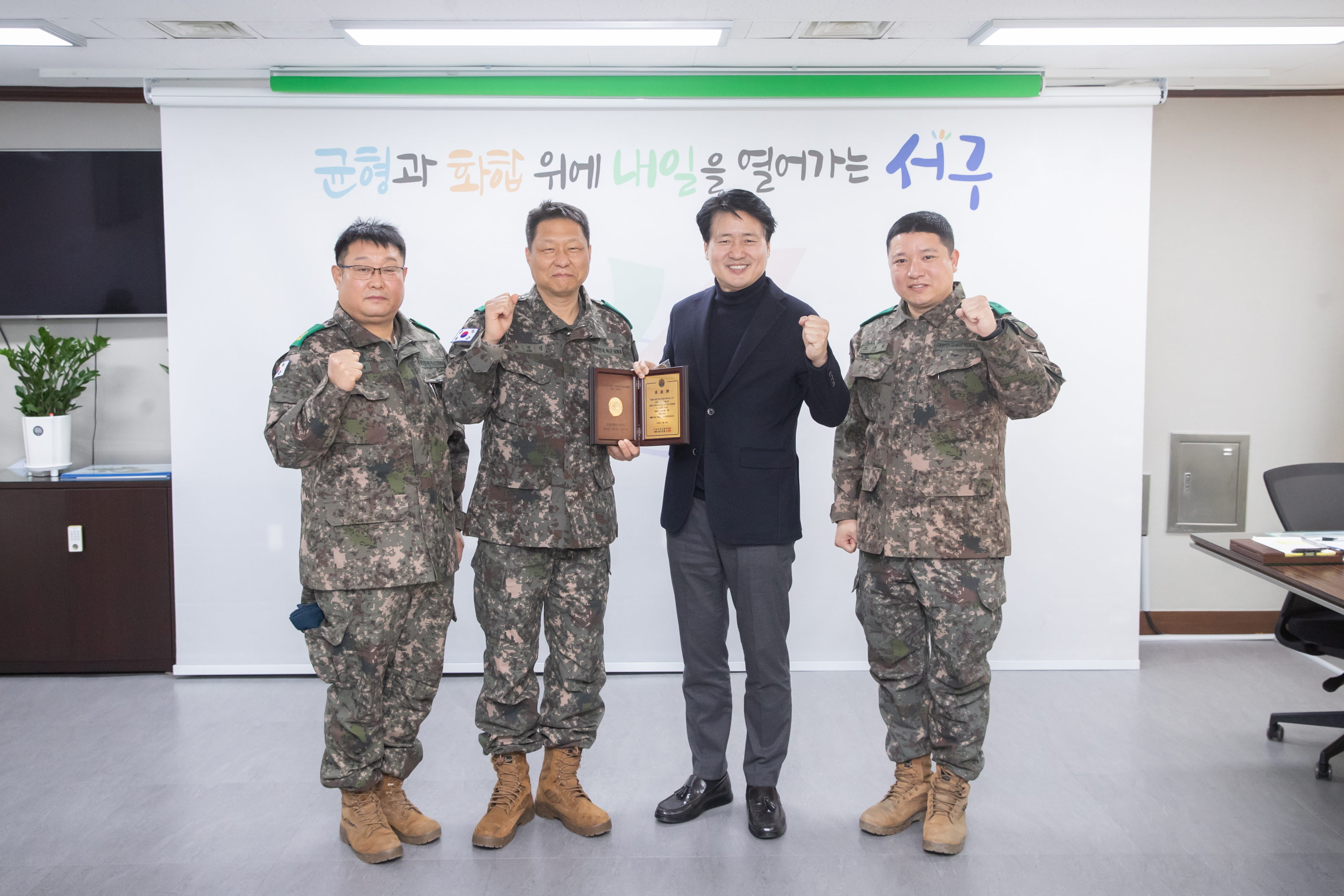 인천 서구(구청장 강범석)가 ‘2022년 예비군 육성지원 우수 지자체’에 선정돼 감사패를 받았다고 30일 밝혔다. 이날 감사패는 지상작전사령관을 대신해 제7873부대장이 서구청을 방문해 전달했다.