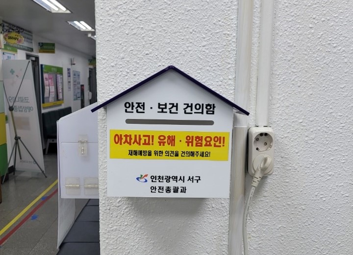 인천 서구(구청장 강범석)가 중대재해예방에 관한 안전·보건 건의함을 설치하는 등 적극적으로 종사자의 의견을 청취하겠다고 24일 밝혔다.