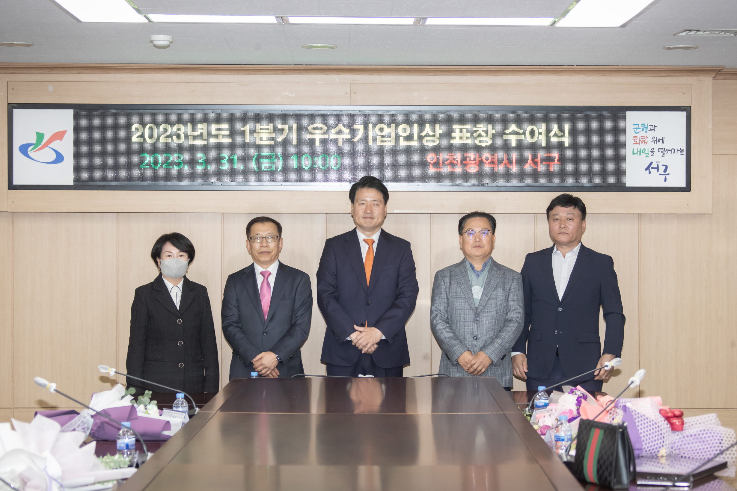 인천 서구(구청장 강범석)가 31일 올해 1분기 우수기업인상 시상식을 열고 지역사회 발전에 기여한 모범 기업체 대표 7명을 시상했다고 밝혔다.