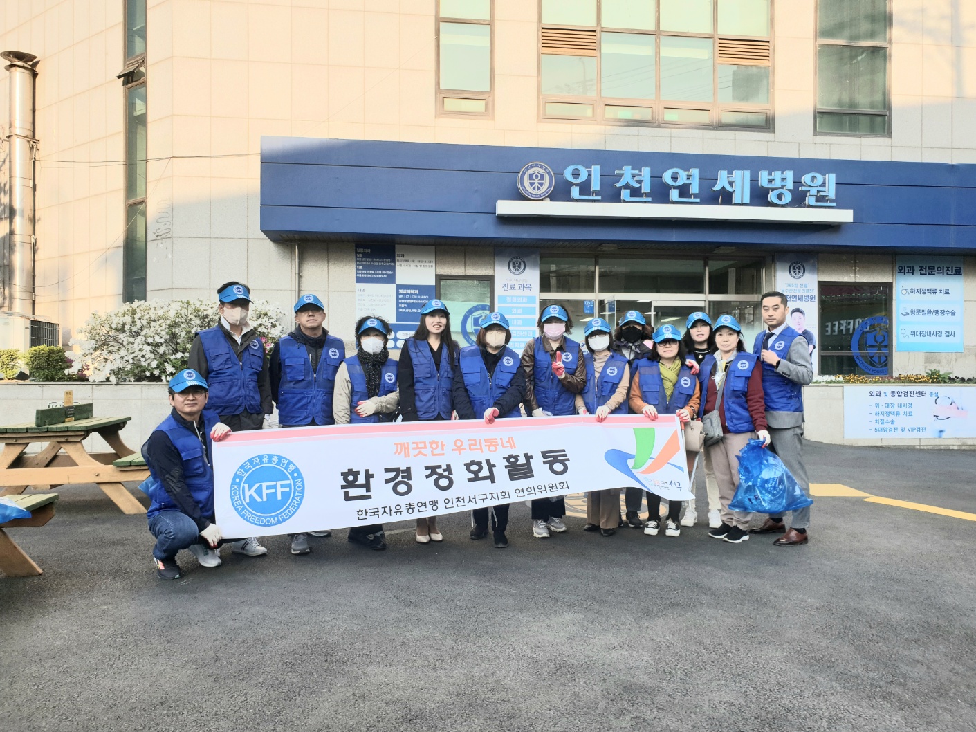 이날 자유총연맹은 연희동 내 인천연세병원 인근 도로에서 무단투기 쓰레기, 담배꽁초 등을 수거했다. 한만재 위원장은 “환경정화를 위해 애써주신 회원들게 감사드리며 앞으로도 깨끗한 마을 환경 조성을 위해 더욱 노력하겠다”고 말했다.