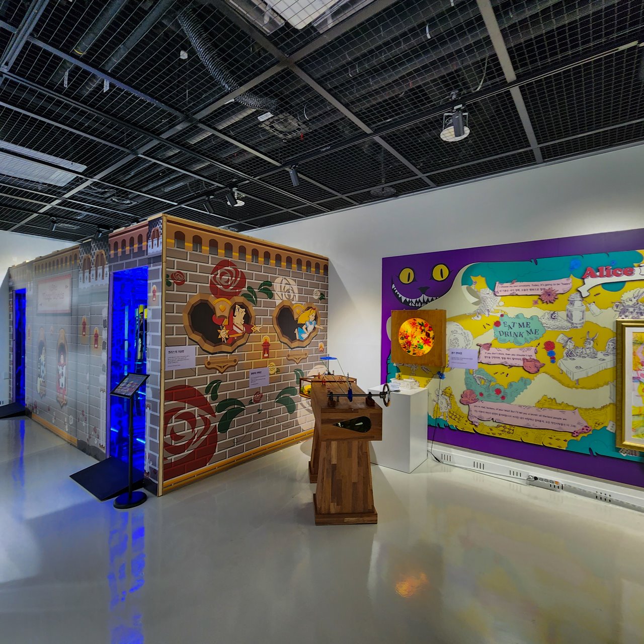 이번 전시에는 ‘이상한 나라의 앨리스’, ‘알라딘 요술램프’. ‘헨젤과 그레텔’ 등 아이와 어른 모두가 잘 알고 있는 동화가 체험 작품과 시각예술 작품으로 구현됐다. 만화경으로 작품을 보며, 앨리스 거울방, 헨젤과 그레텔 과자집, 알라딘 양탄자와 지니 등 동화 속의 마법적이 요소들이 가득한 체험 작품들과 강석문, 김명진 등 국내 유수의 작가진이 재창조한 시각예술 작품이 조화를 이룬다.