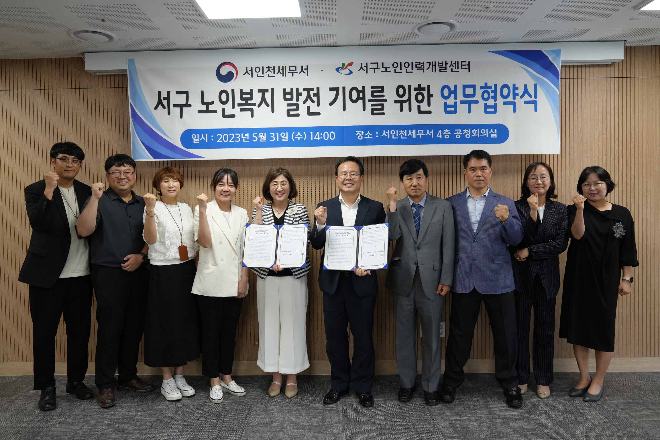 인천 서구는 31일 구 노인일자리 전담기관 서구노인인력개발센터(센터장 강유경)이 서인천세무서와 ‘노인복지 발전을 위한 업무협약’을 체결했다고 밝혔다.