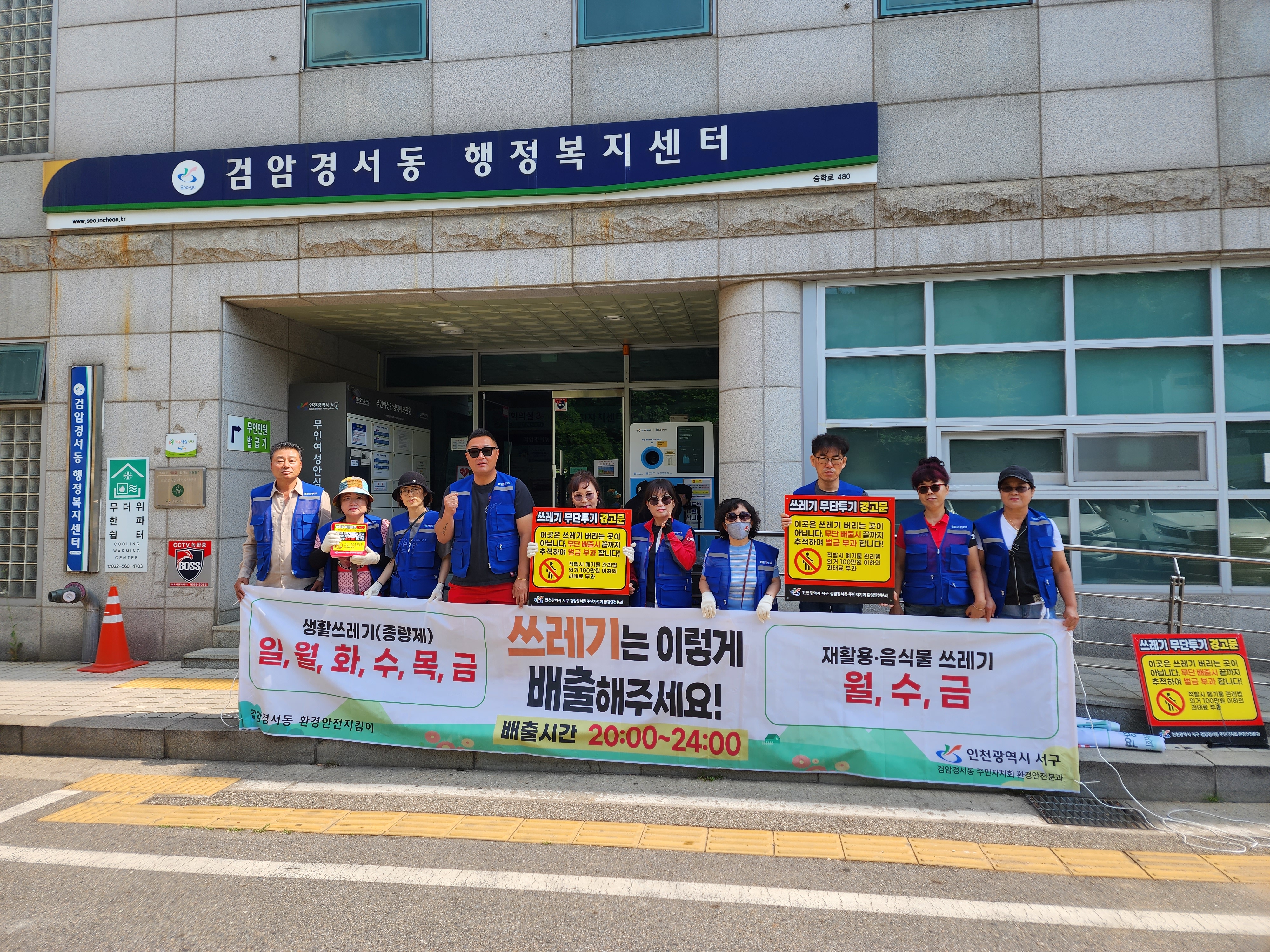 인천 서구 검암경서동 주민자치회(회장 최정훈)는 지난 6일 깨끗하고 안전한 마을을 만들어가기 위한 환경캠페인을 실시했다.