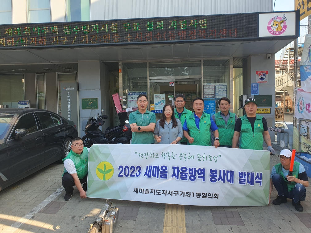 인천 서구 가좌1동 새마을협의회(회장 김성재)가 15일 봉사대 발대식을 열고 지역 내 감염병 발생 취약지역에 대한 방역을 시작했다.