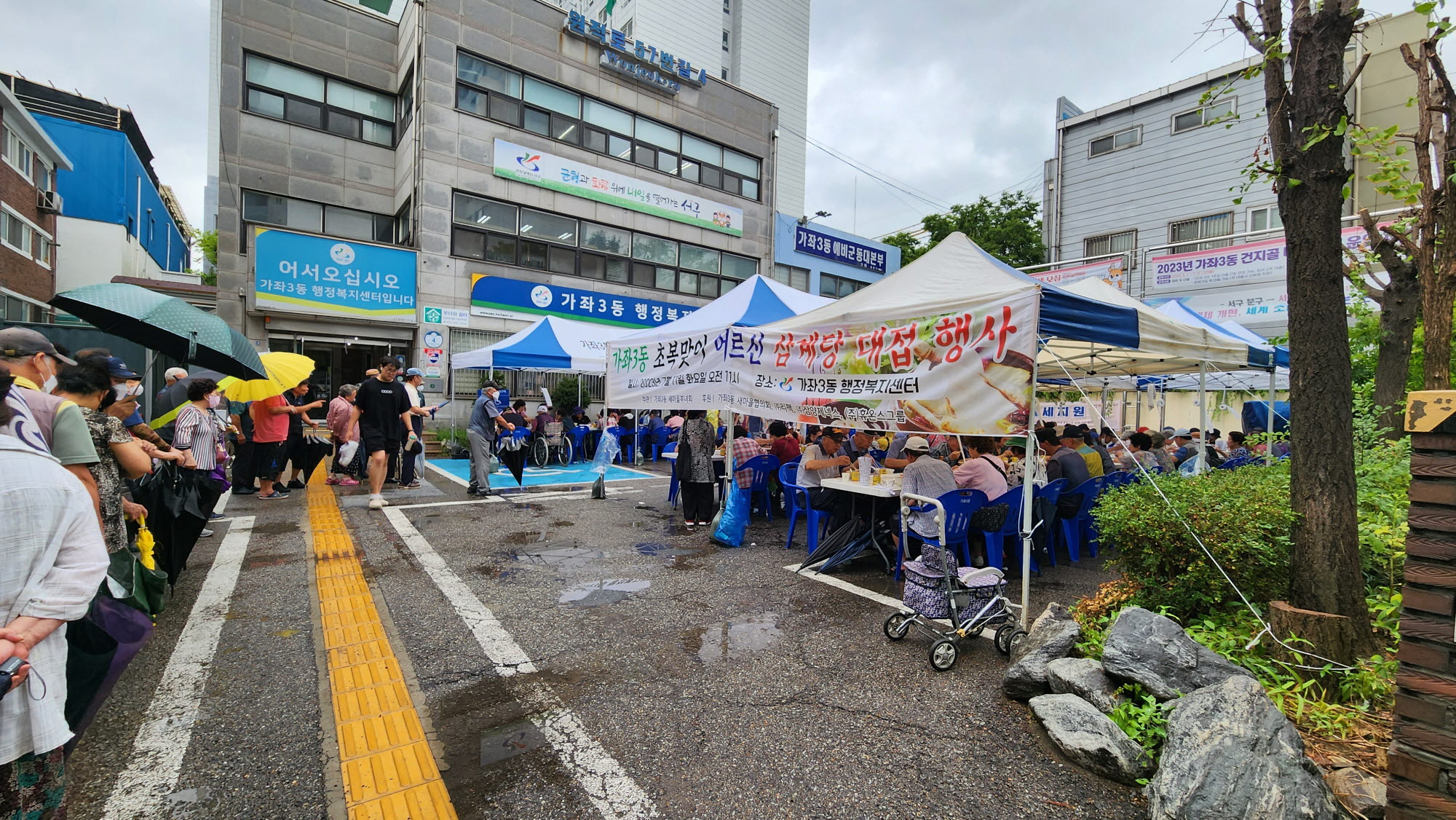이날 행사는 가좌3동 새마을협의회와 ㈜리팩, ㈜삼양제넥스, ㈜주온스그룹 등의 후원으로 이뤄졌다. 부녀회 회원들의 정성스러운 손맛을 더해 손수 끓인 삼계탕 400인분과 수박, 꿀떡 등 어르신을 위한 푸짐한 한 상이 마련됐다. 또한 비가 오는 더운 날씨에도 주민자치회 등 주민단체 회원들이 참석해 일손을 보탰다.