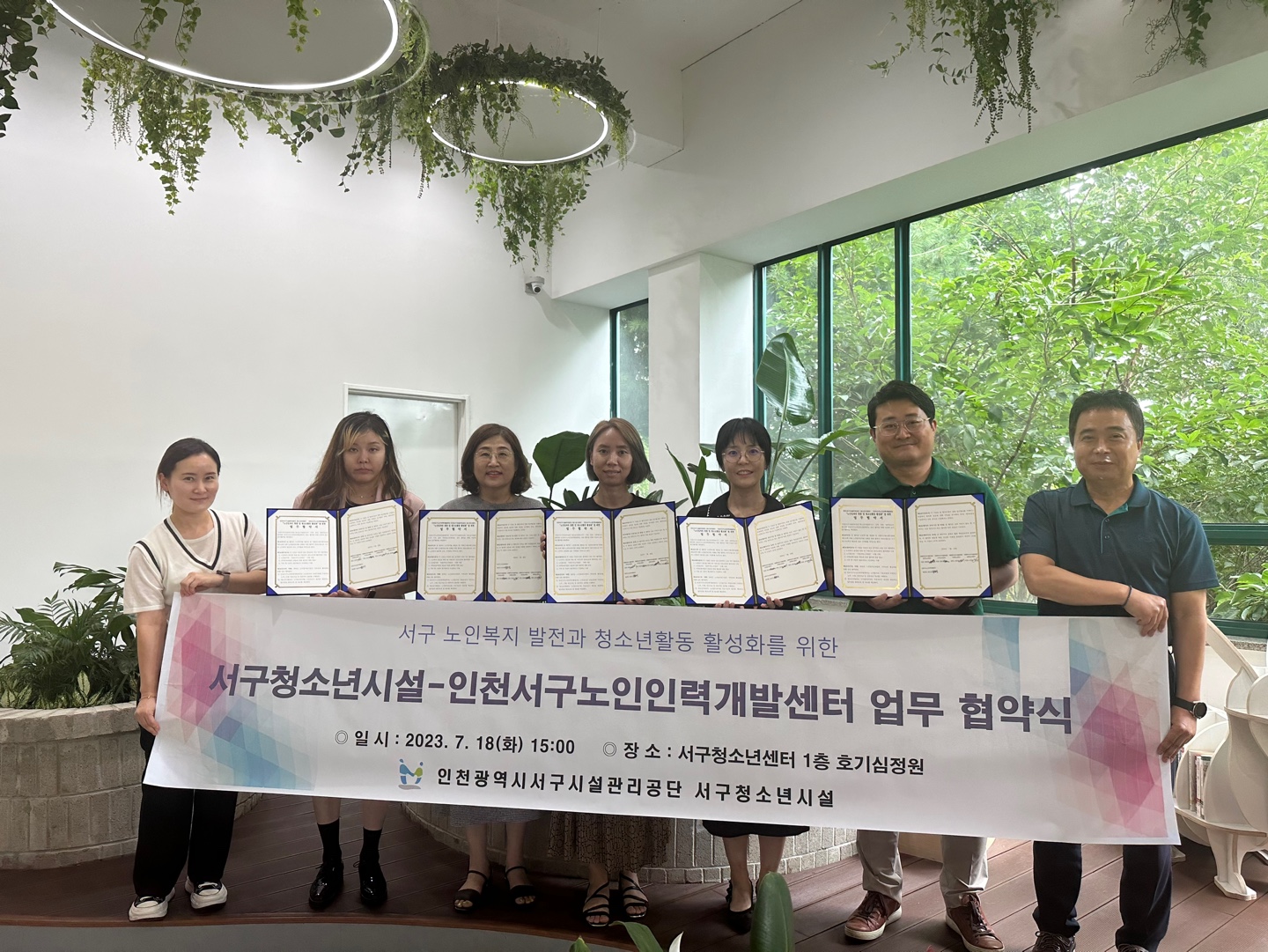 인천 서구는 18일 서구 노인인력개발센터(센터장 강유경)가 서구시설관리공단 청소년사업단과 업무협약을 맺고 ‘노인 일자리 창출과 청소년활동 활성화’에 협력하기로 했다고 밝혔다.
