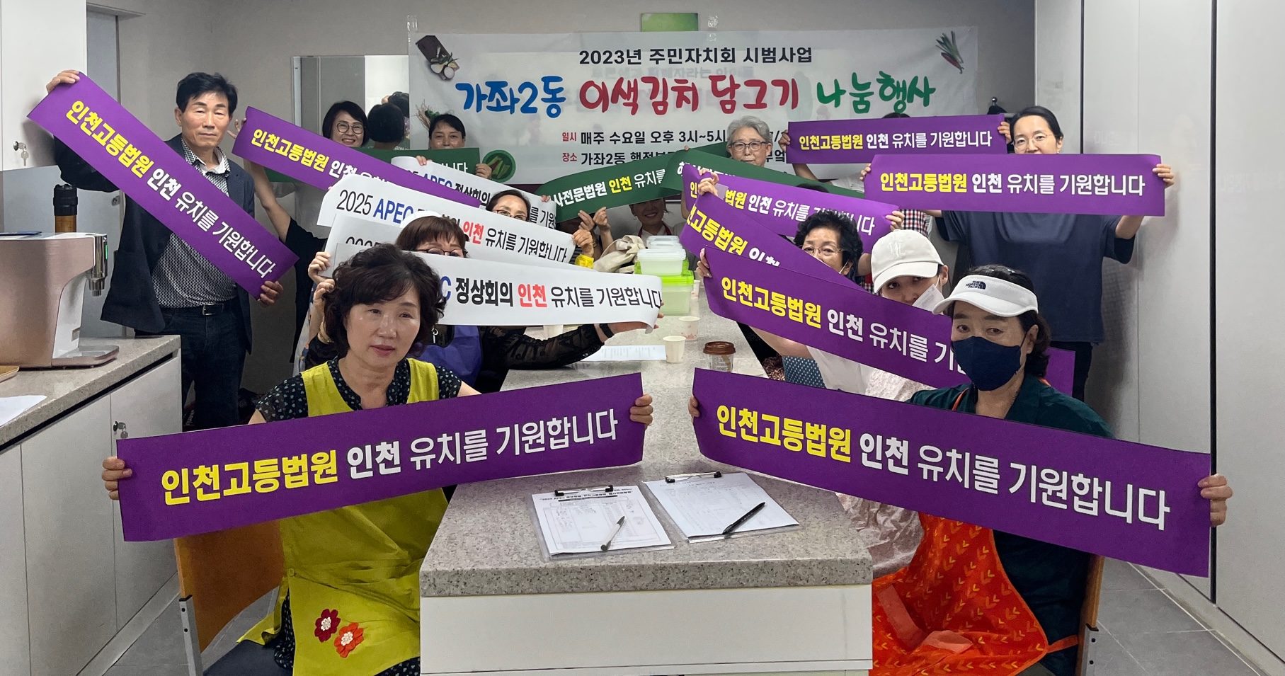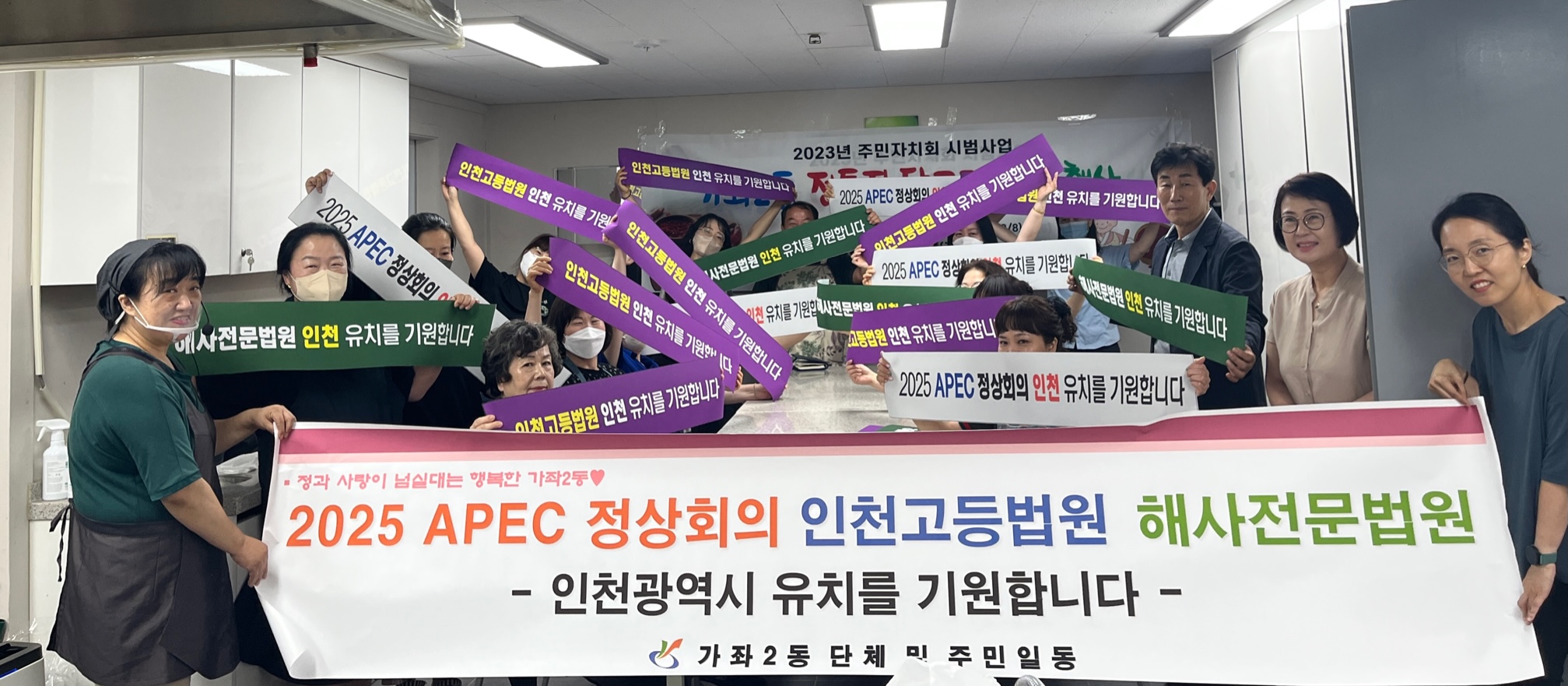 인천 서구 가좌2동 주민자치회(회장 오귀남)가 지난 18일까지 주민자치회 시범사업에 참여한 주민과 함께 ‘2025 APEC 정상회의, 인천고등법원, 해사전문법원 인천 유치’를 기원하는 릴레이 지지 선언을 했다.