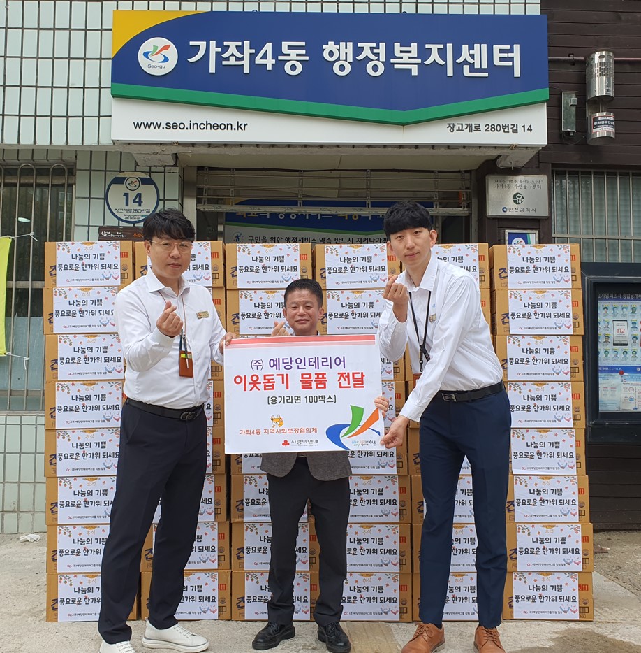 ㈜예당인테리어, 가좌4동에 추석맞이 정(情)가득 용기라면 100박스 전달