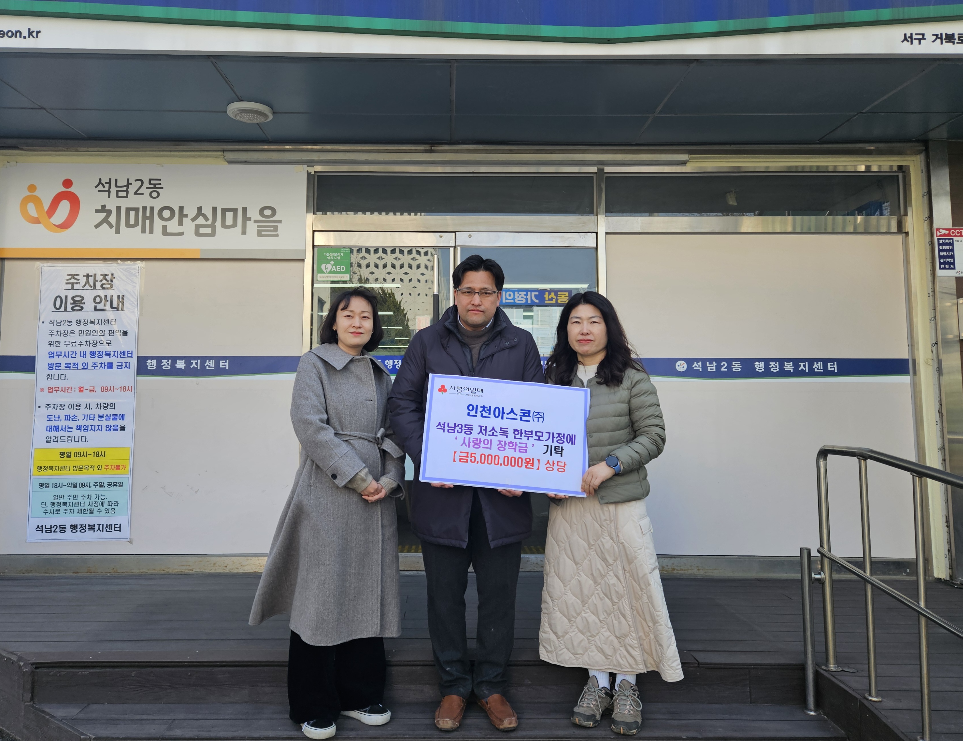 ㈜인천아스콘, 서구 석남3동에 한부모가정 장학금 기탁