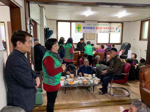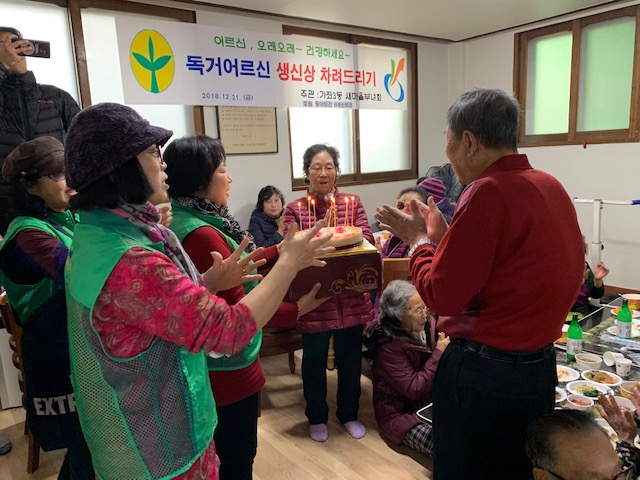 인천광역시 서구 가좌3동 새마을부녀회(회장 박순심)는 지난 12월 21일 가좌3동 경로당에서 동아토건(주)와 비에스토건(주)의 후원으로 관내 홀로 사시는 어르신 30분께 생신상을 차려드렸다.