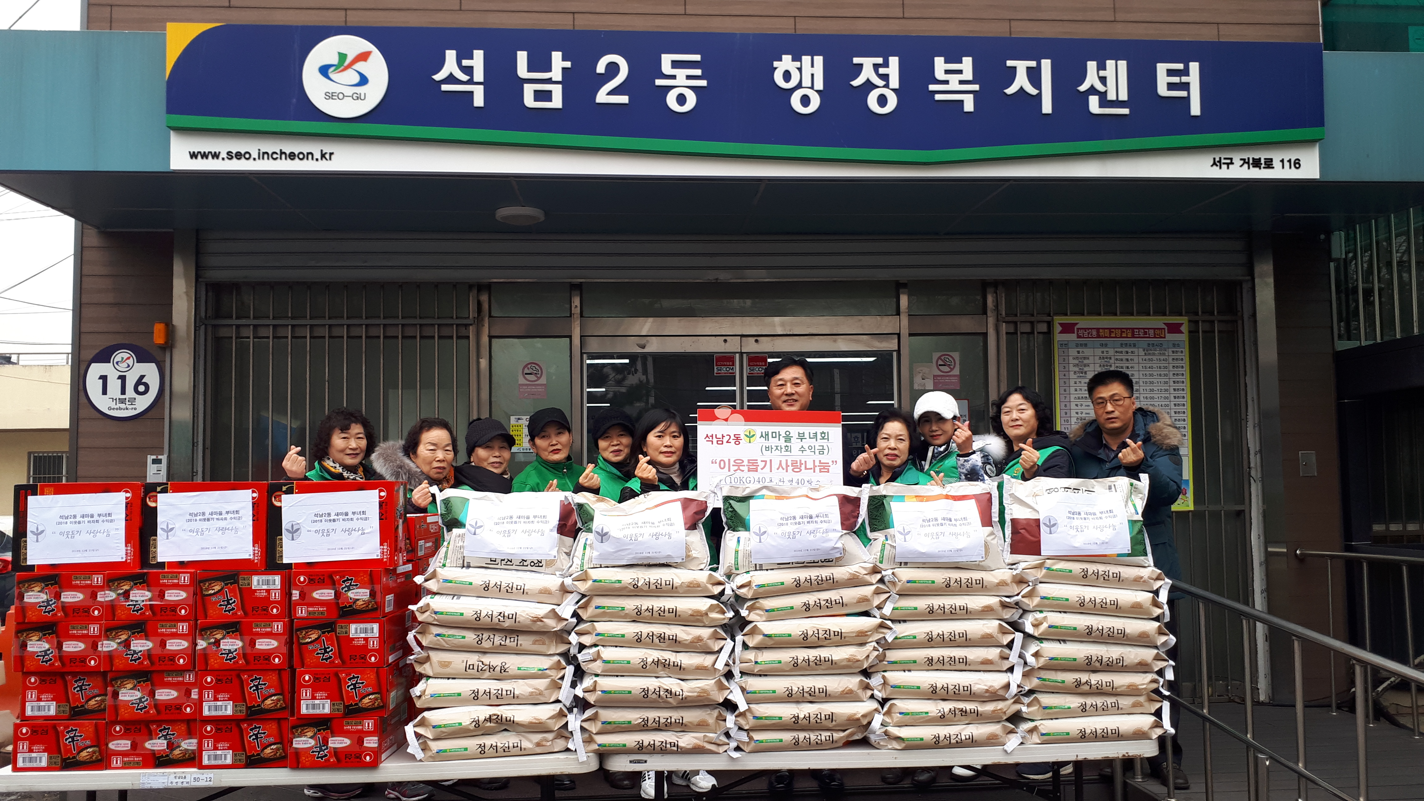 이날 준비된 양곡과 라면은 새마을 부녀회 바자회에서 행사 기금으로 마련되었으며 석남2동에 거주하는 취약계층에 전달 예정이다.