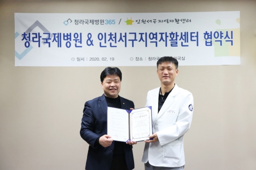 인천서구지역자활센터(센터장 조영정)는 지난 19일 청라국제병원(대표원장 정세진)과 자활사업 참여주민 건강증진을 위한 업무협약을 체결했다고 밝혔다.