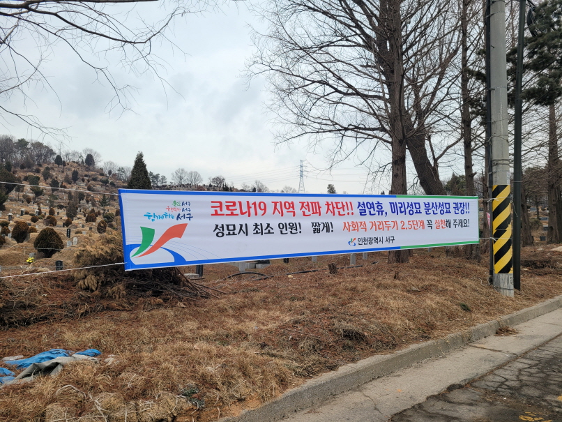 인천 서구(구청장 이재현)는 설 연휴를 계기로 코로나19 재확산이 일어나지 않도록 연휴 기간 관내 법인·단체묘지에 대한 방역 대책을 수립해 시행 중이라고 29일 밝혔다.
