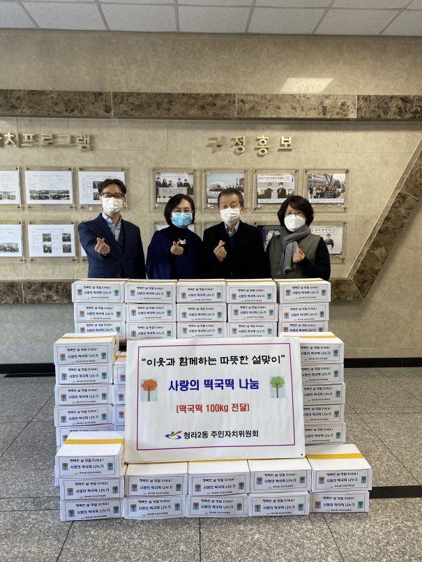 이에 청라2동 이상진 동장은 “매년 사랑의 떡국 떡을 준비해 주시는 주민자치위원분들께 깊은 감사를 전한다”며 “전해주신 물품은 관내 이웃들에게 잘 전달하겠으며, 앞으로도 우리 이웃들에게 많은 관심을 기울여주길 바란다”고 말했다.