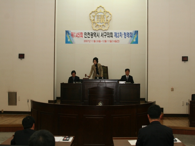 2007년 11월26일 제145회 서구의회(제2차 정례회) 제1차 본희의가 서구의회 의장(고월출)주재로 서구의회 본회의장에서 열렸다.