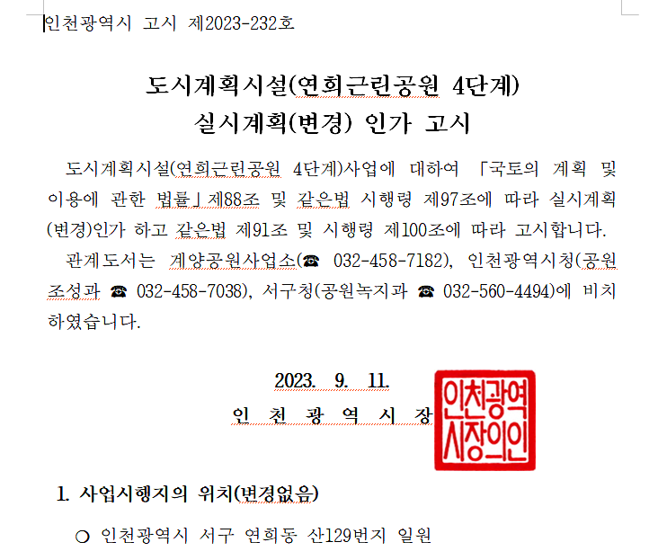 도시계획시설(연희근린공원_4단계)_실시계획(변경)_인가_고시.hwp