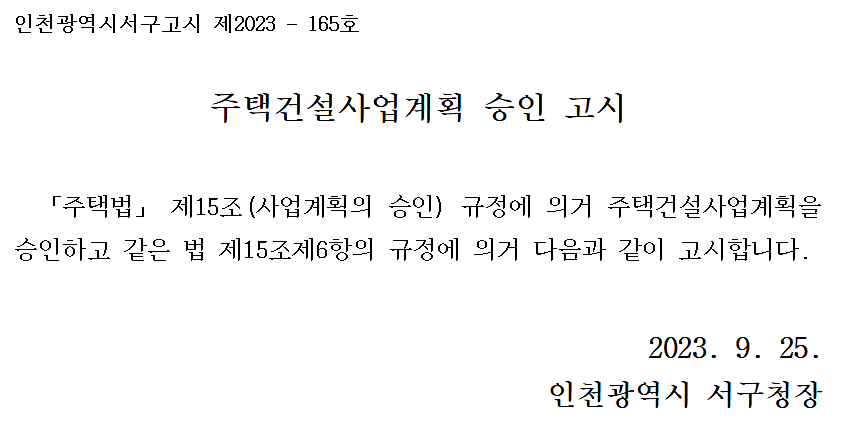 주택건설사업계획 승인 고시[검단신도시 AB13블록]