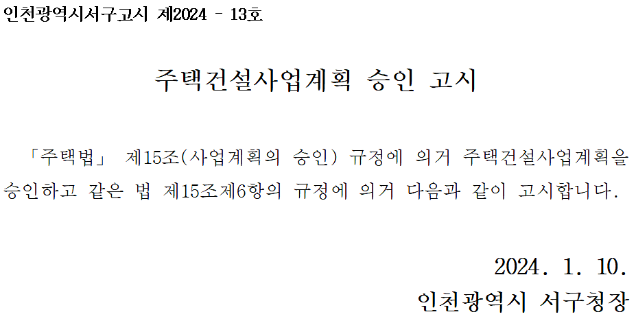 주택건설사업계획 승인 고시[검단신도시 AB20-1블록]