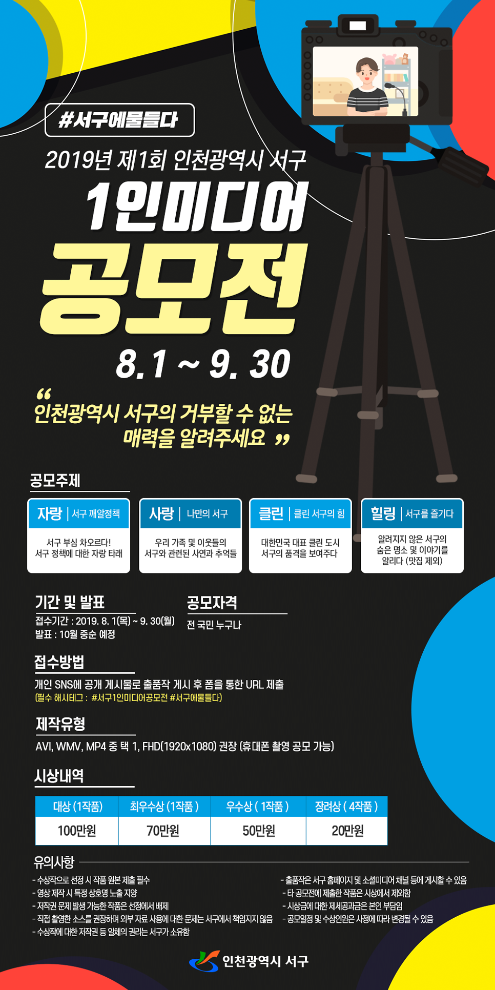 <인천광역시 서구 1인미디어 공모전 안내>