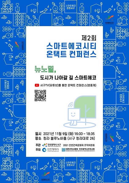 2021 인천건축문화제 기획전으로 서구에서 「뉴노멀, 도시가 나아갈 길 '스마트에코'」라는 주제로 제2회 스마트에코시티 컨퍼런스를 개최합니다.