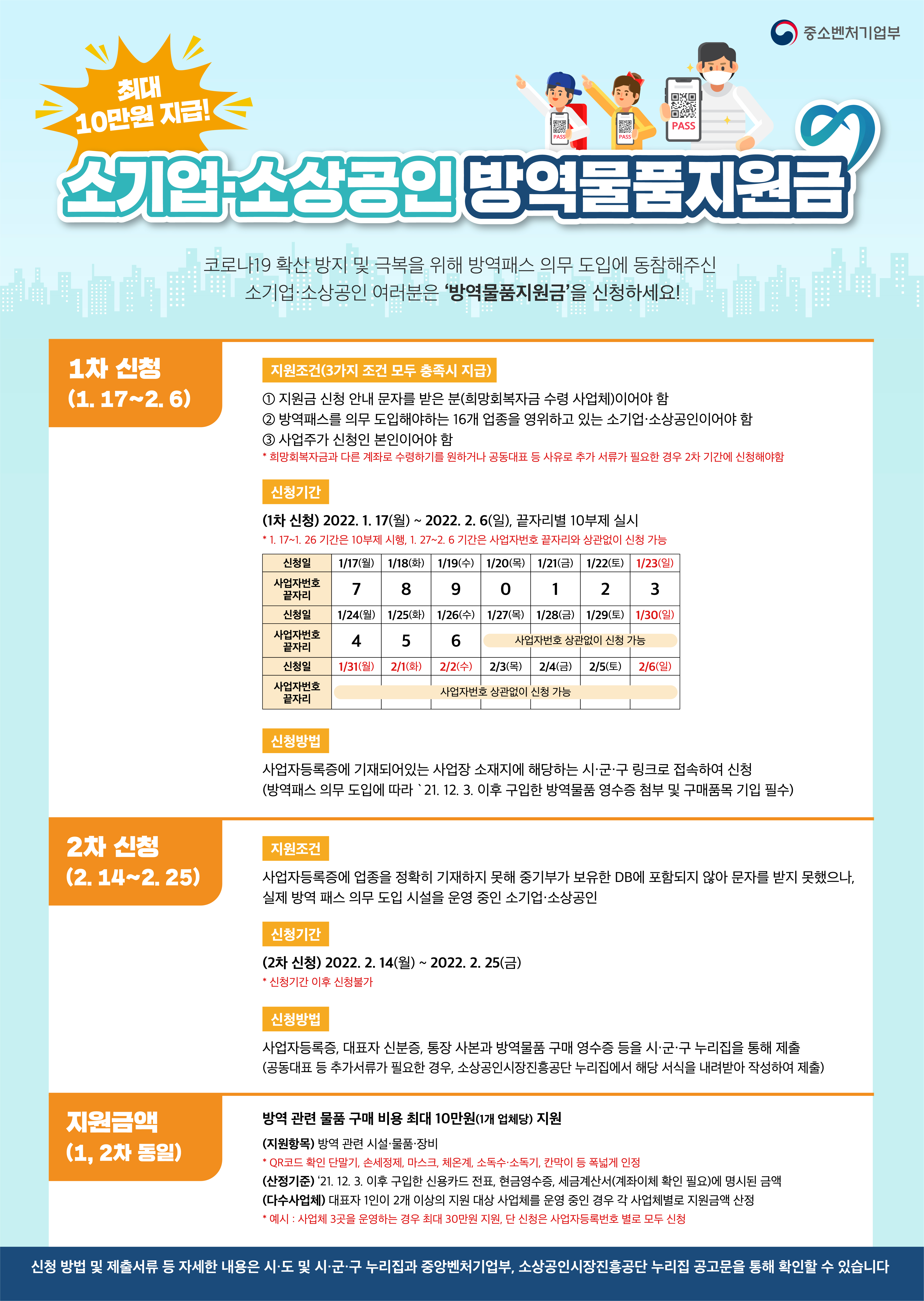 코로나19 확산 방지를 위해 방역패스가 적용된 소기업·소상공인을 위한 「방역물품 지원금」 지원계획을 아래와 같이 안내합니다.