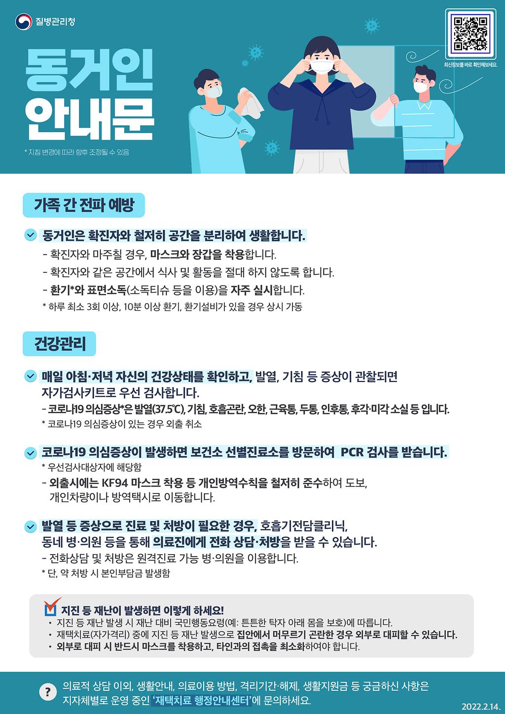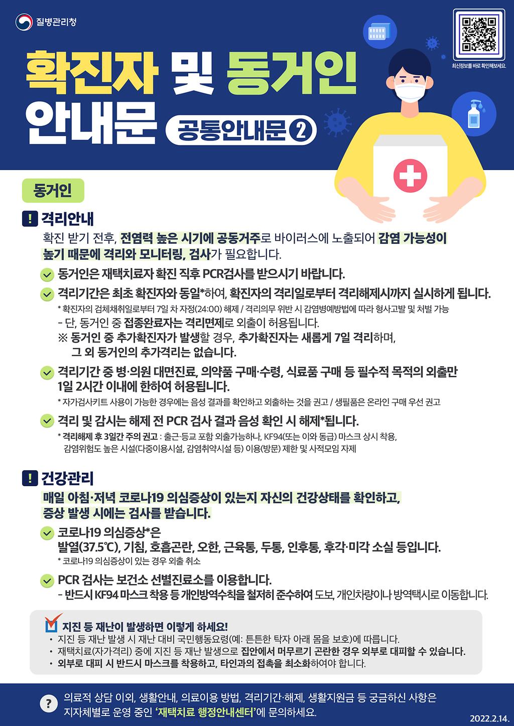 코로나19 확진자 및 동거인 안내문