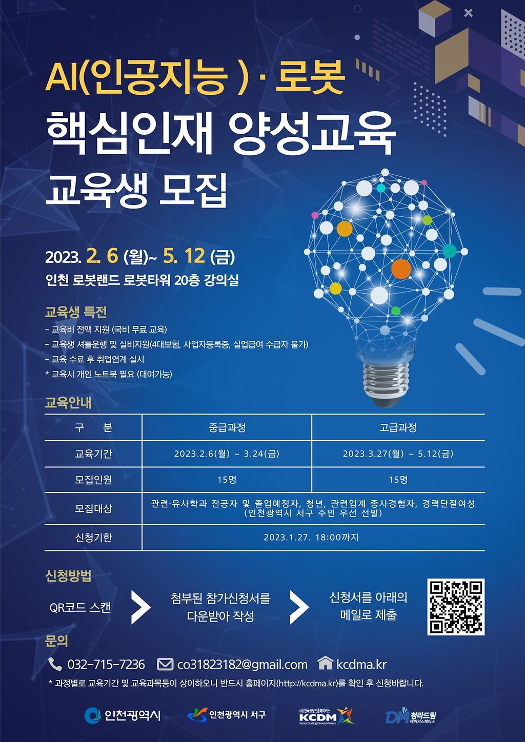 아래와 같이 2023 로봇 · AI[인공지능] 핵심인재 양성교육 교육생을 모집합니다