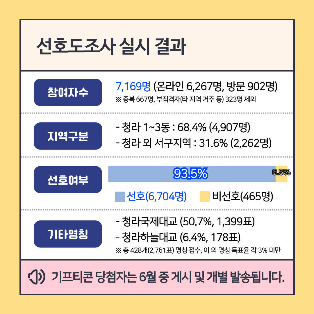 「가칭 청라대교(제3연륙교) 명칭 구민 선호도조사」 실시 결과