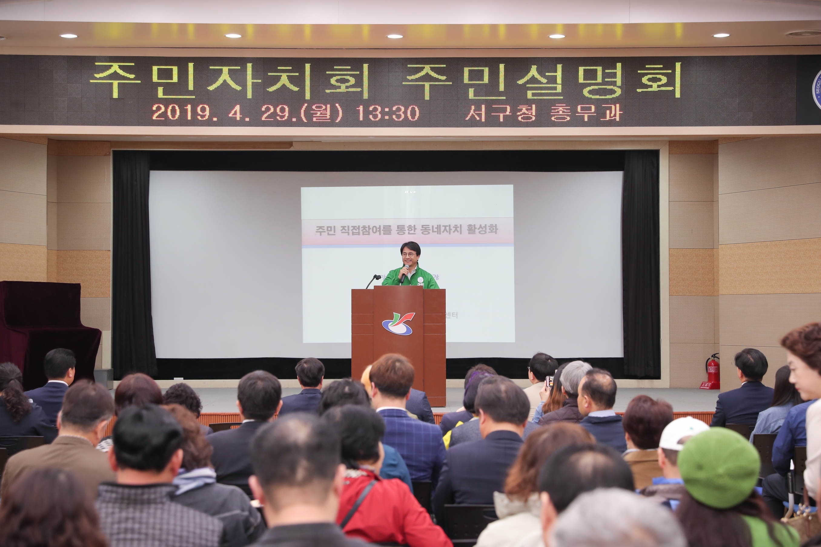 O 내 용 : 서구 주민자치회의 성공적 전환을 위한 주민설명회를 개최하였다.