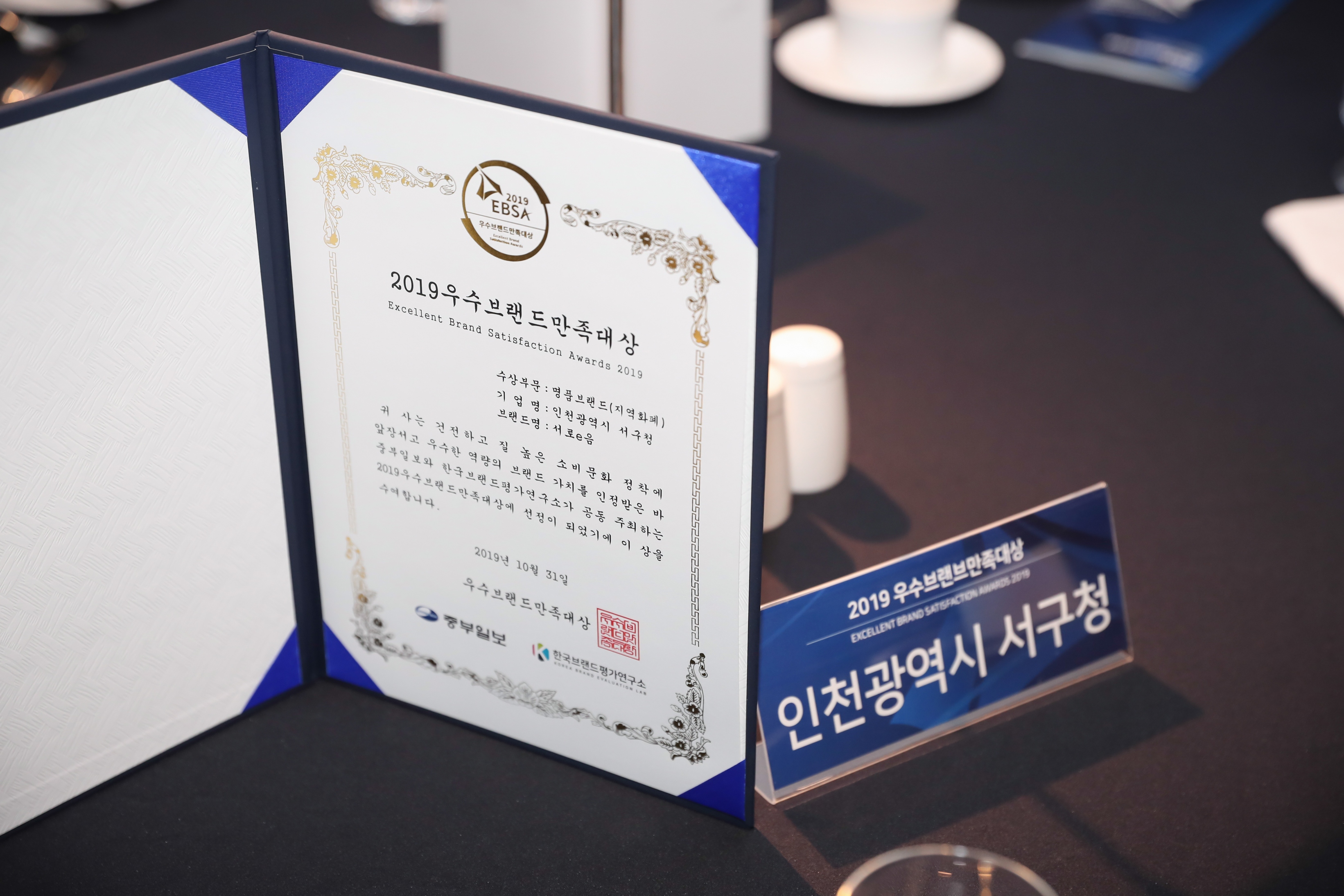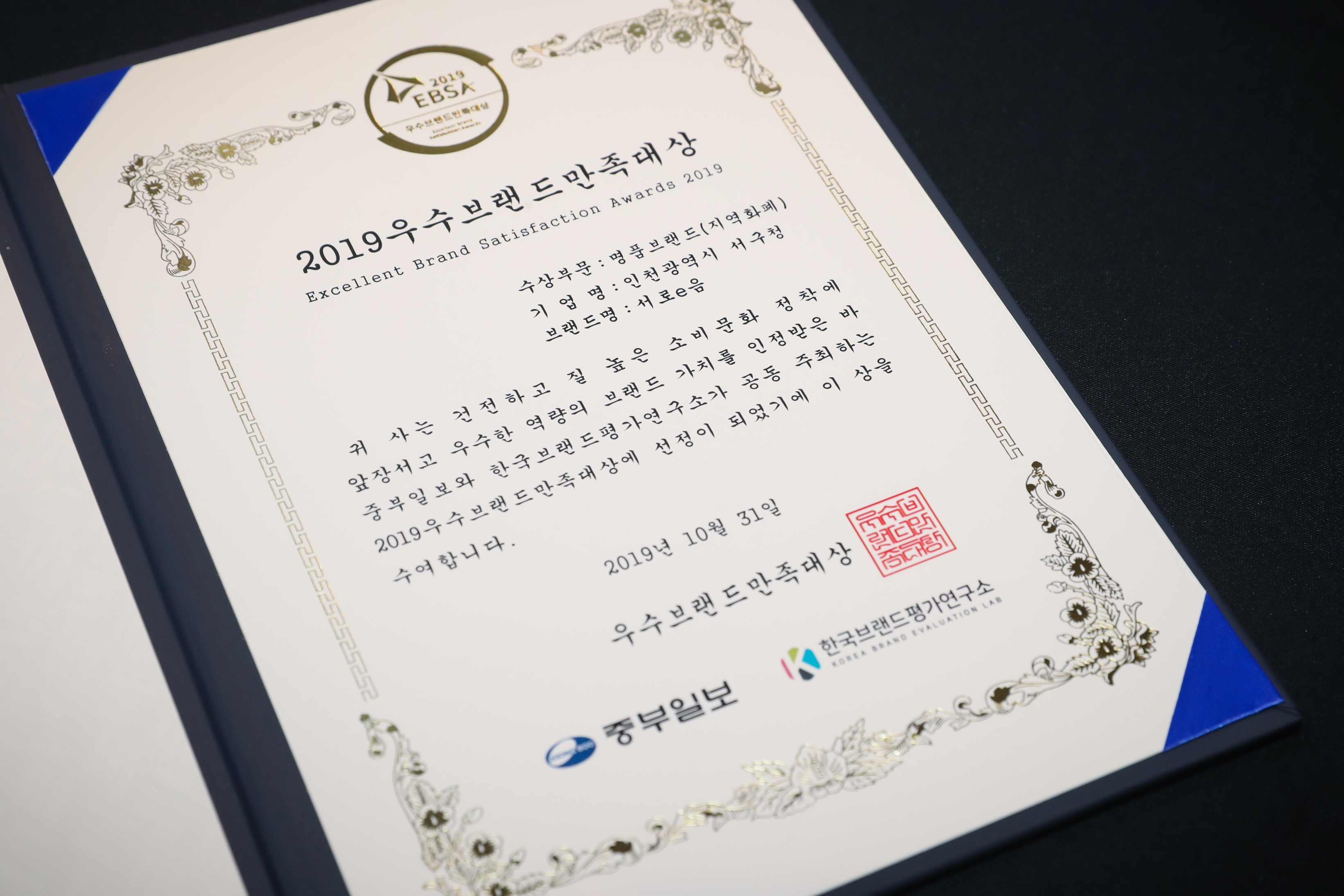 20191031 중부일보 우수브랜드 만족 대상 수상