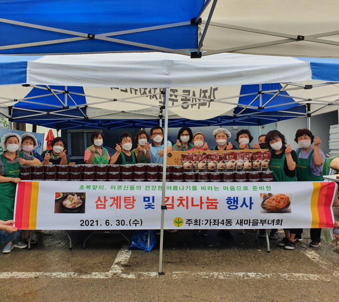 인천 서구 가좌4동 새마을부녀회(회장 권오분)는 지난달 30일 초복 무더위를 대비해 관내 저소득 가정 및 독거노인들을 위해 삼계탕 및 김치 나눔 행사를 진행했다.