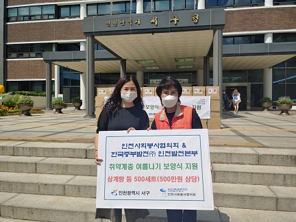 한국중부발전 인천발전본부의 후원으로 마련된 물품은 말복을 맞이해 서구 저소득가정에 전달될 예정이다.