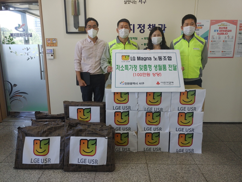 LG Magna 노동조합은 전신인 LG전자노조 인천지부 때부터 노조의 사회적 책임(USR Union Social Responsibility) 실천 활동으로 매년 맞춤형 생필품 지원사업을 실시하고 있다.