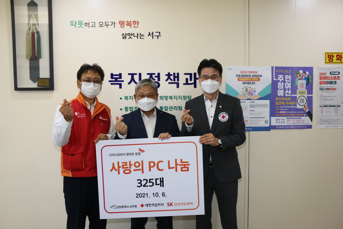 이날 전달받은 PC는 대한적십자사 인천지사를 통해 서구 내 저소득가정과 아동복지시설 등에 온라인 학습 정보 격차 해소를 위한 후원 물품으로 쓰여질 예정이다.