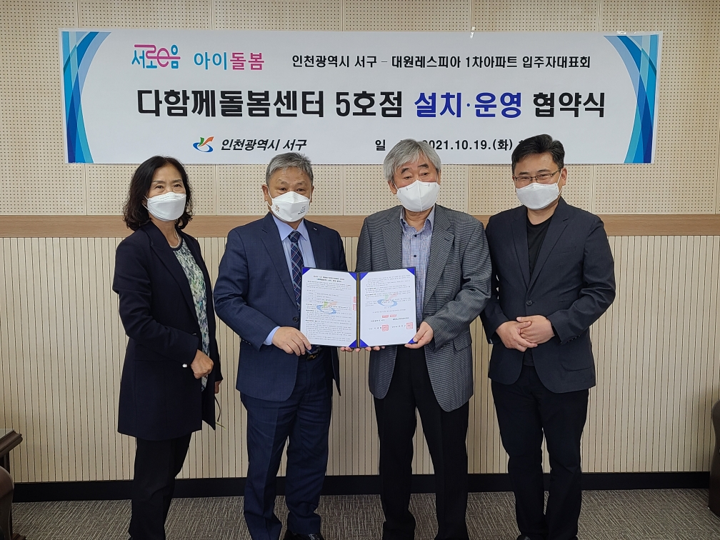 협약에 따라 대원레스피아1차 입주자대표회는 단지 내 주민공동시설 일부를 5년간 무상으로 제공한다. 서구는 이 공간을 꾸며 ‘다함께돌봄센터’ 5호점을 설치하고 운영하게 된다.