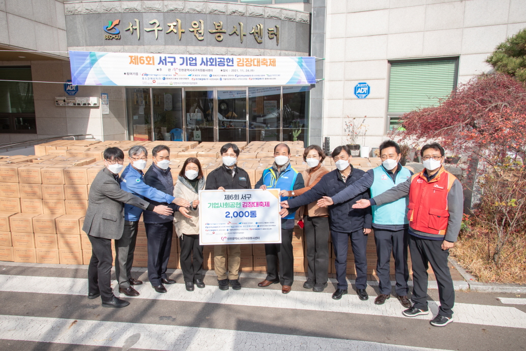 인천 서구 자원봉사센터(센터장 문순석)가 24일 지역 내 기업, 기관 등이 함께 저소득층 겨울나기를 지원하는 ‘제6회 서구 기업사회공헌 김장 대축제’를 열고 김장김치 총 2,000박스를 지원한다고 밝혔다.