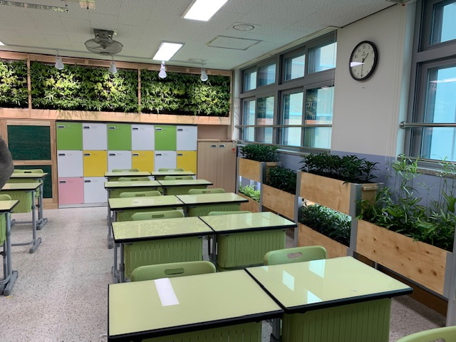 이에 따라 경연초중학교를 테스트베드로 선정하고 교실 벽면과 측면에 바이오월을 설치했다.