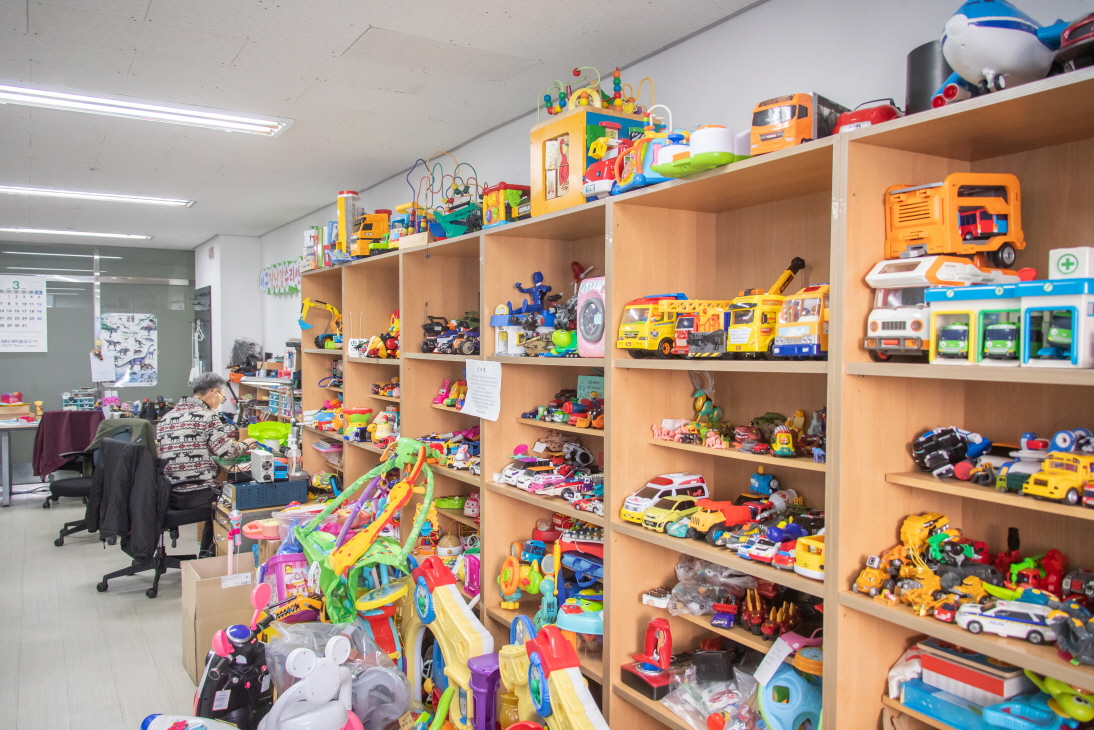 수리뿐 아니라 인형, 자동차, 로봇 등 여러 장난감이 진열돼 나눔을 실시하고 필요 없게 된 장난감은 기증도 받고 다른 장난감과도 교환도 가능하다.