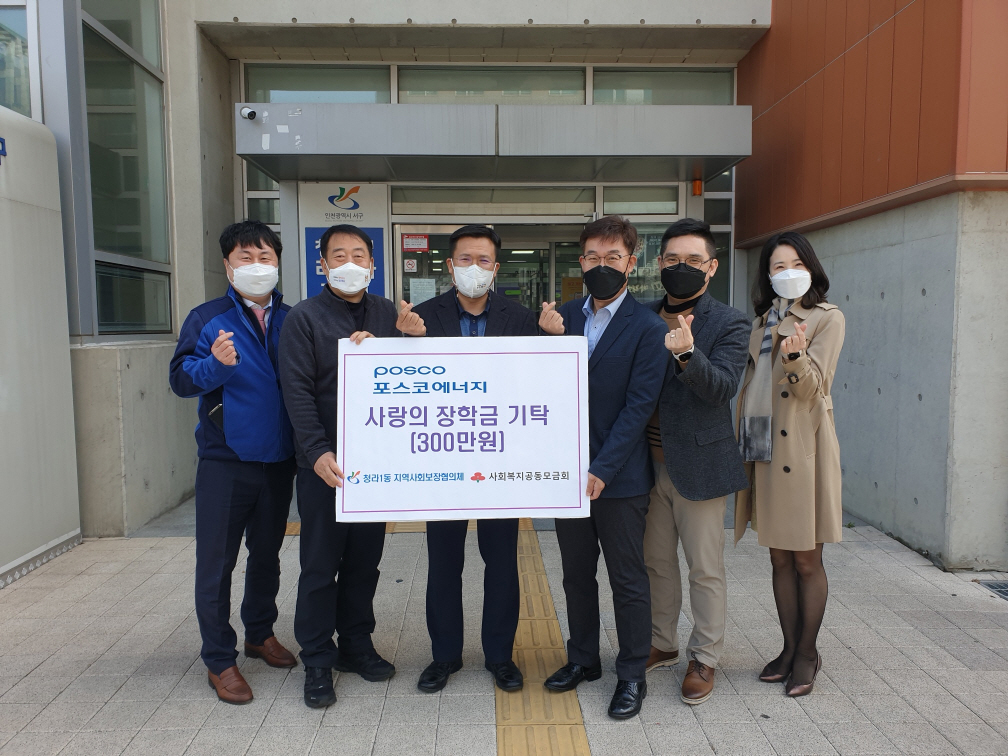 인천 서구 청라1동 지역사회보장협의체(공동위원장 노화영, 조병상)가 29일 포스코에너지(주)(사장 정기섭)으로부터 저소득층 아동을 위한 장학금 300만원을 전달받았다고 밝혔다.